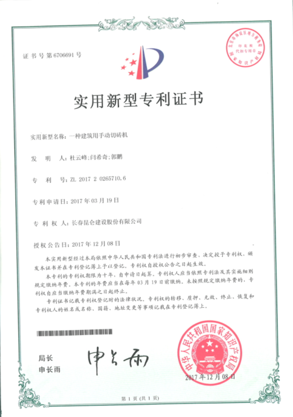 專利證書